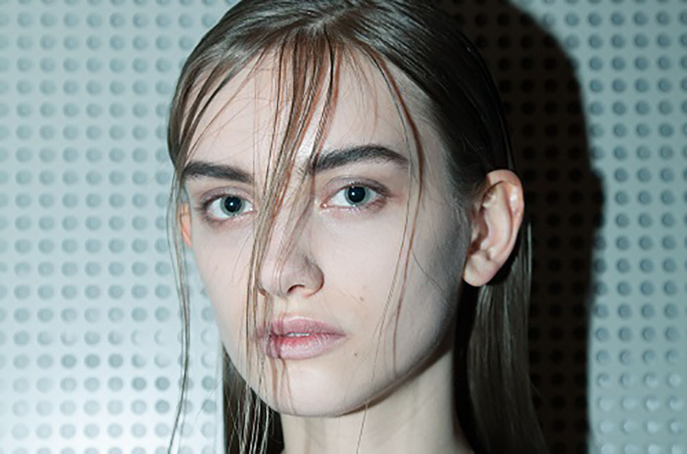 音楽 × ファッションの融合をテーマとするLITHIUM(リチウム)の今季のテーマは”XX”。眉に意思を感じるミニマムでクリーンなヘアメイクが印象的。