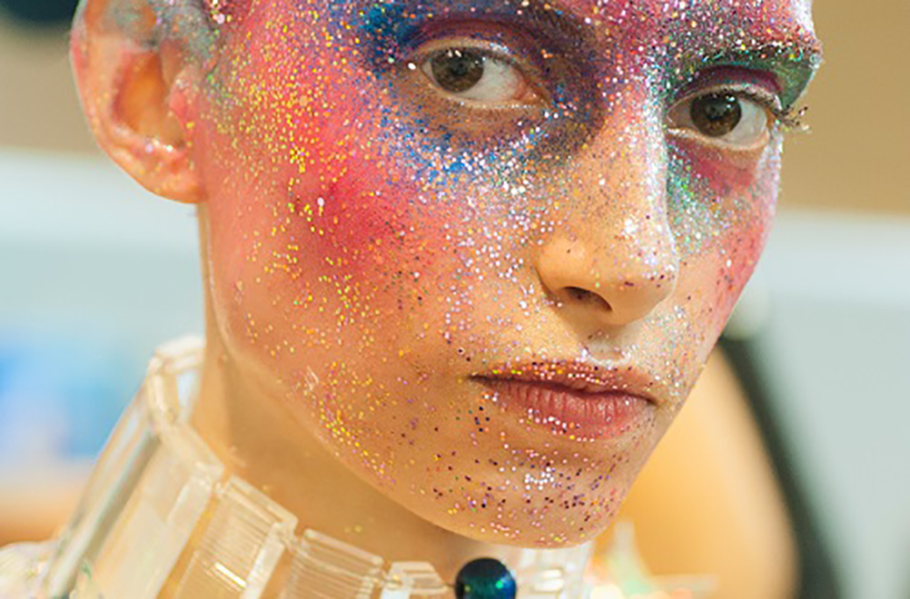 パリ・オートクチュールコレクションで発表したYUIMANAKAZATO(ユイマナカザト)の作品が東コレで披露されました。3Dプリンター、ホログラムフィルムなどの最新テクノロジーを用い、地球外のような空間が幻想的。
