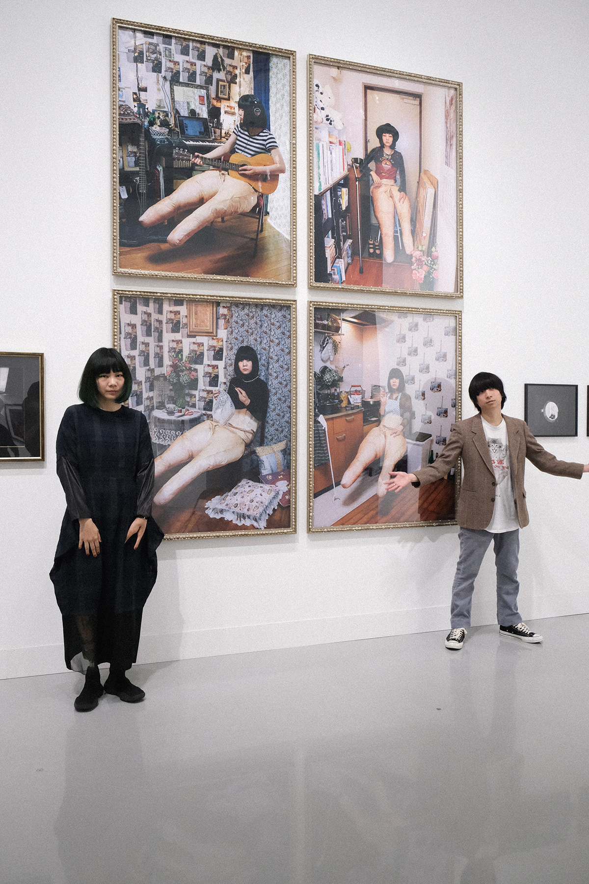 クリープハイプの尾崎世界観さんと現代を生きるアーティストとの対談企画。第5回は、資生堂ギャラリーで4月18日(日)まで開催されている「アネケ・ヒーマン&クミ・ヒロイ、潮田 登久子、片山 真理、春木 麻衣子、細倉 真弓、そして、あなたの視点」展からアーティストの片山真理さんにご登場いただきました。片山さんは身体を模った手縫いのオブジェや立体作品、装飾を施した義足を使用したセルフポートレート作品を制作するアーティスト。今回の展覧会のテーマとなるのは「境界」です。前編では、片山さん、尾崎さんが考える境界について、また作品制作に関する話をうかがいました。