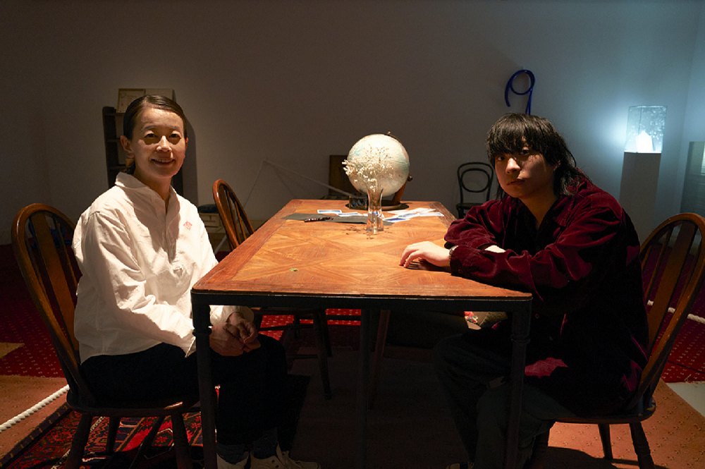 クリープハイプの尾崎世界観さんとアーティストがものづくりについて語り合う対談企画。今回の展示は「第八次椿会 ツバキカイ 8 このあたらしい世界」。「椿会」というのは、第二次世界大戦で一時中断していた資生堂ギャラリーの活動を、1947年に再開するにあたり誕生したグループ展。今年始まった第八次椿会のメンバーは、杉戸洋、中村竜治、Nerhol (ネルホル)、ミヤギフトシ、宮永愛子、目[mé]。6組のアーティストがこれから3年という時間をかけて、アフターコロナの「新しい世界」について考えていく企画で、今年のテーマは「2021 触発/Impetus」です。今回は、このメンバーの中からアーティストであり小説家でもあるミヤギフトシさんが尾崎世界観さんと語り合います。美術と小説に取り組むミヤギさん、音楽と小説に取り組む尾崎さんの共通点、相違点とは?