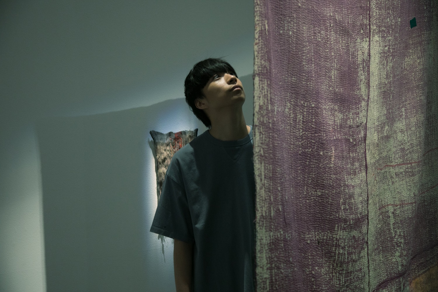 ギャラリーや美術館によく足を運ぶというクリープハイプの尾崎世界観さんが見る現代美術とは? 第2回は、資生堂ギャラリーで開催中の「『第13回 shiseido art egg』遠藤 薫『重力と虹霓(こうげい)』展」を鑑賞。沖縄、東北、ベトナム、インドなど、さまざまな地域で布を集め、それらをつなぎ合わせたり、縫い目を入れたりして、布をつくり、使い、修復し、再び使っていくという終わることのない作品を制作し続ける遠藤さん。布ができるまでの工程を初めて知ったという尾崎さんは、その途方もなさに驚きを隠しきれず。