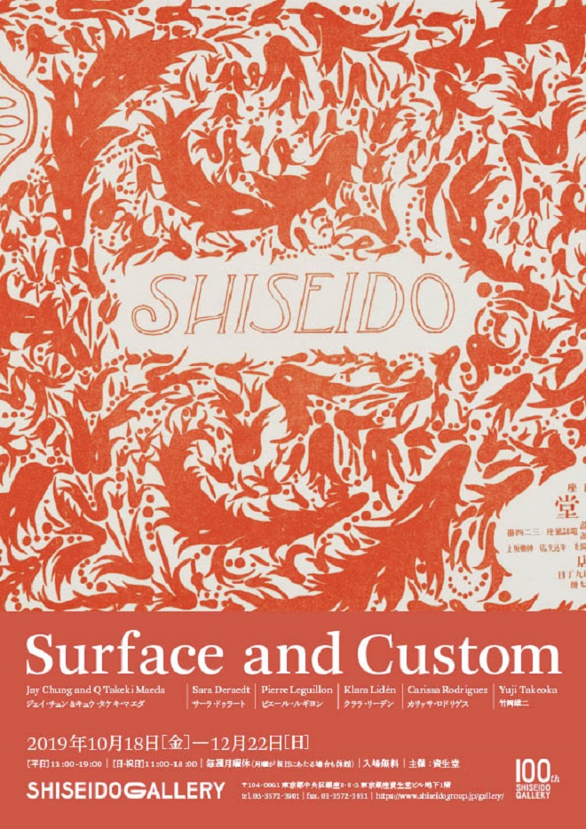 メロディに乗せてメッセージがダイレクトに届く音楽と、テキストを味わううち、じわじわと言葉がしみ込んでくる小説。その両方を活動の軸にするクリープハイプの尾崎世界観さんが見る現代美術。第3回は、ドイツ・ベルリンを拠点に活動するアートデュオ、ジェイ・チュン&キュウ・タケキ・マエダ(以下J&Q)による「Surface and Custom」を鑑賞した。資生堂ギャラリー100周年を記念した展覧会であり、本展は資生堂のヴィジュアルイメージの変遷を扱ったJ&Qの作品《Moulting》と彼らがセレクトした5名のアーティストによる作品で構成されている。メディアや表現手法もさまざまで感覚的に楽しめる作品もあるが、資生堂ギャラリー100年の歴史やその背景を想像しながらじっくり見ていると、一見関連がなさそうな作品同士が徐々に共鳴し始める。