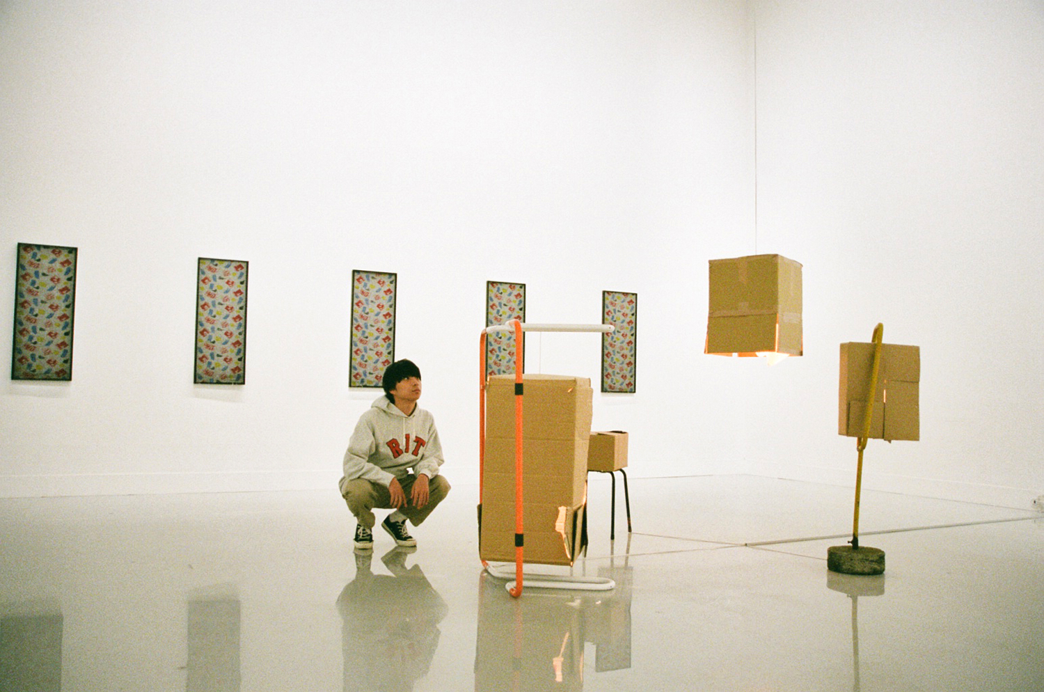 リーデンは街を見るときに、自らの身体にルールを課すのだという。今回の制作では、街を歩くにあたり「常に右側を意識すること」「街で見つけたものの役割を一つひとつ確認すること」を試みた。そうして、バリケードや椅子、標識をピックアップし、段ボールでライトボックスを制作した。