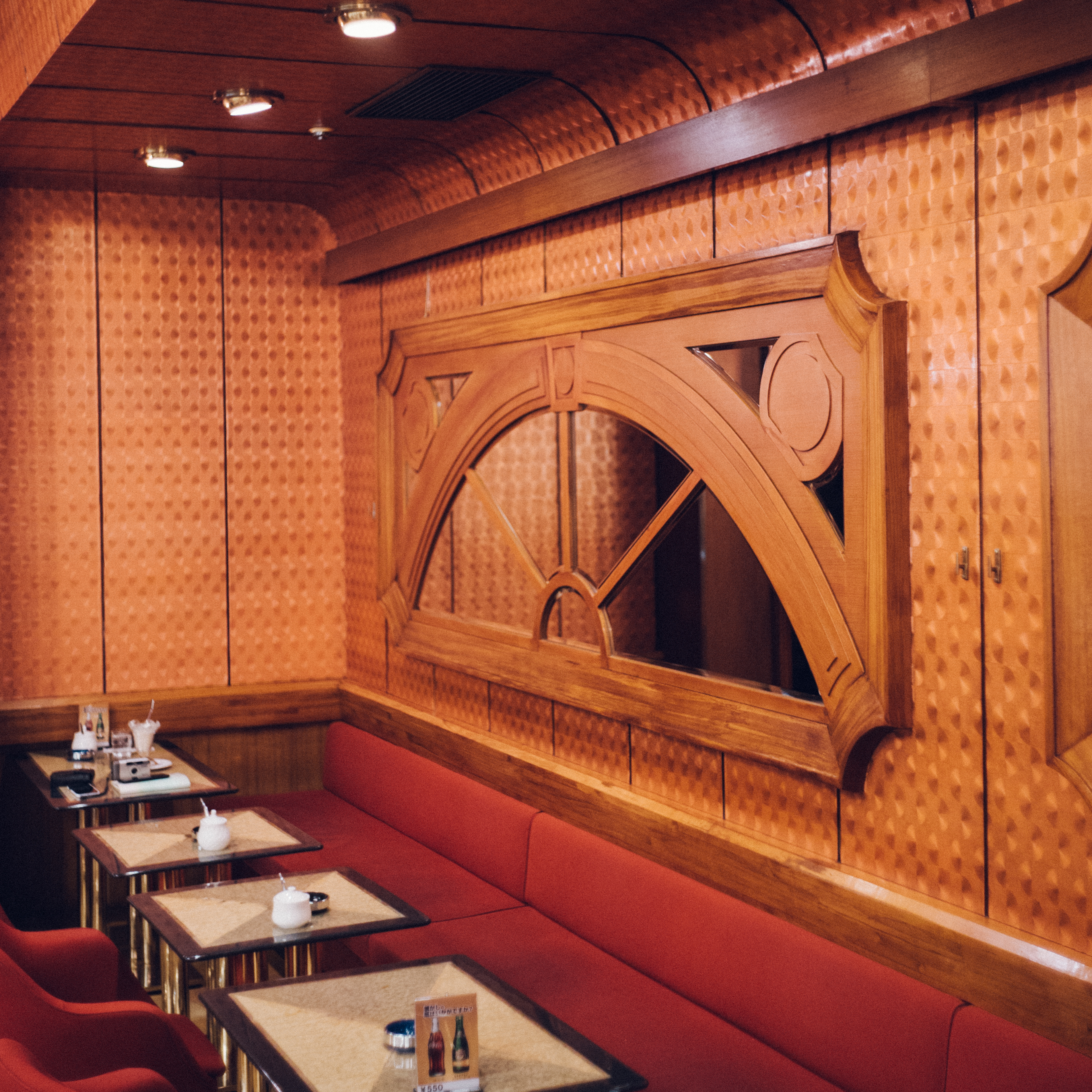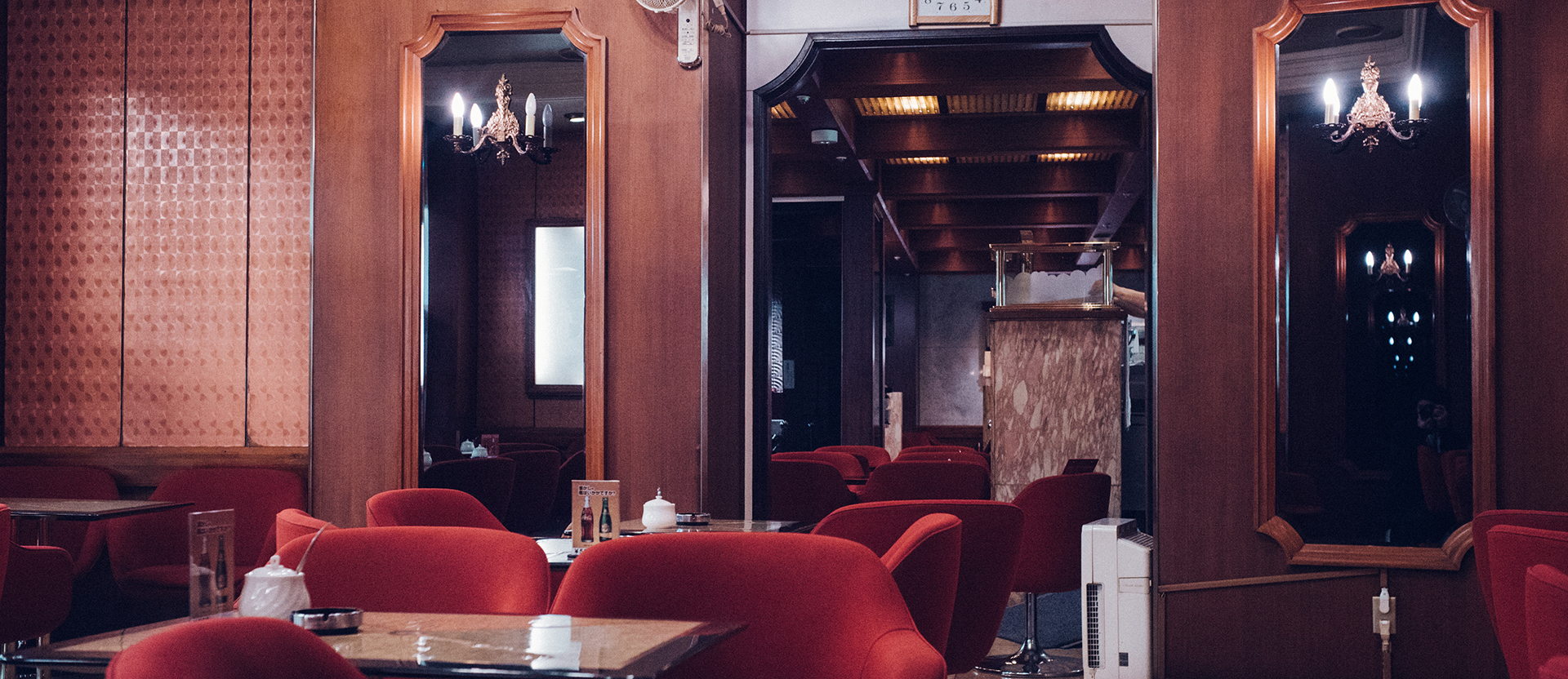 この壁は定期的にお店の人たちによって綺麗に磨かれている。テーブルや赤いベロアの椅子、鏡たちもそう。50余年の時空を超えたこの空間はここを愛する人々によって今もまばゆく輝いている。