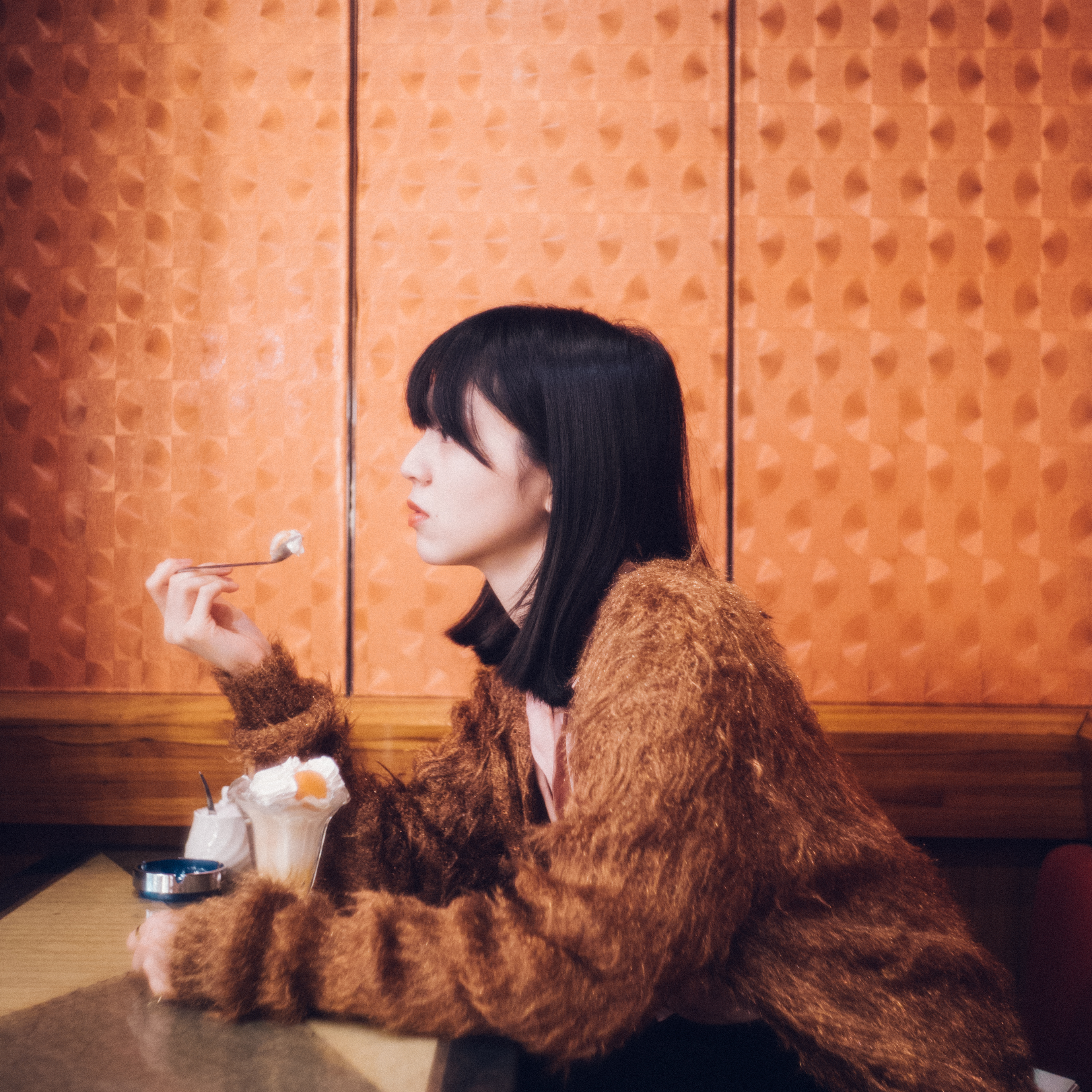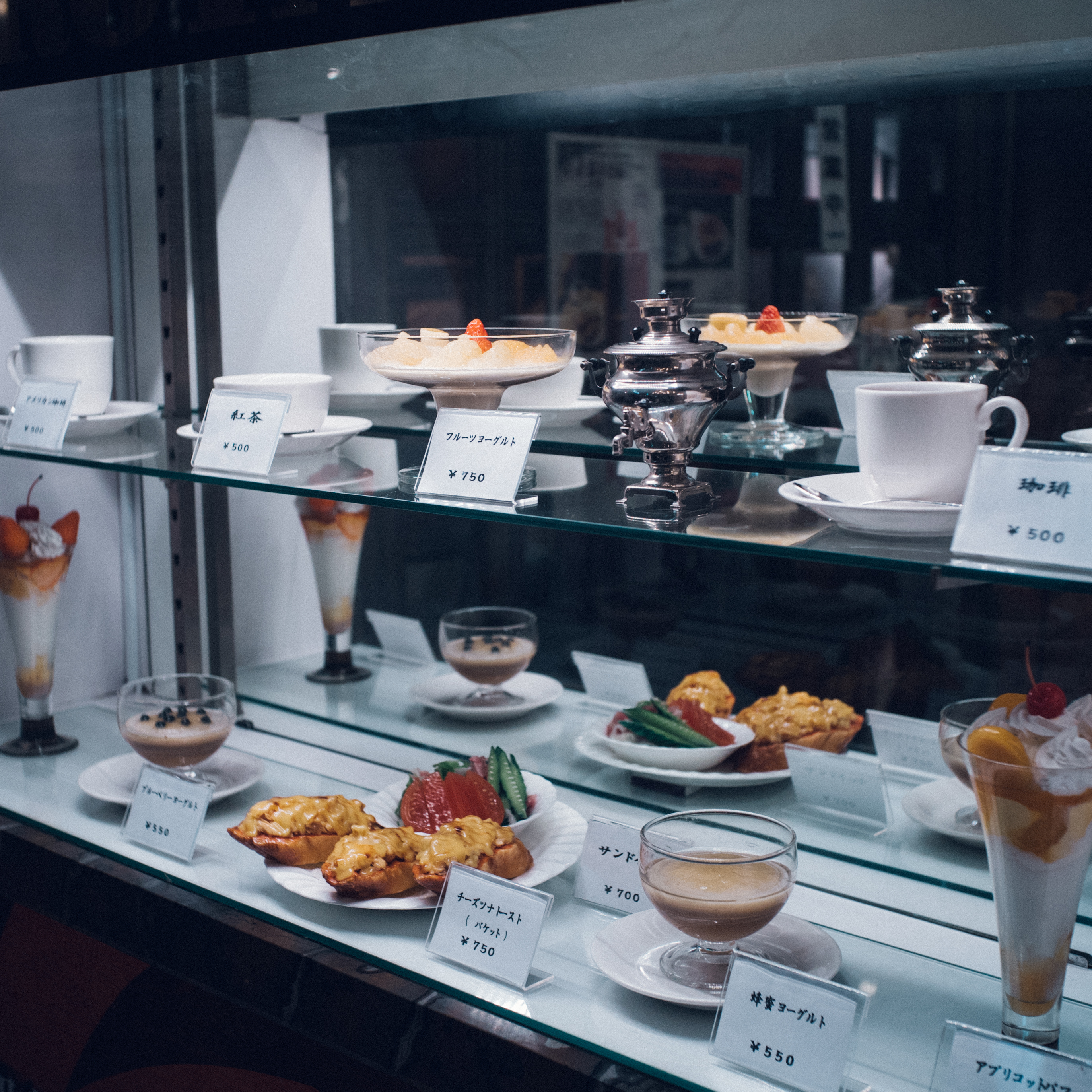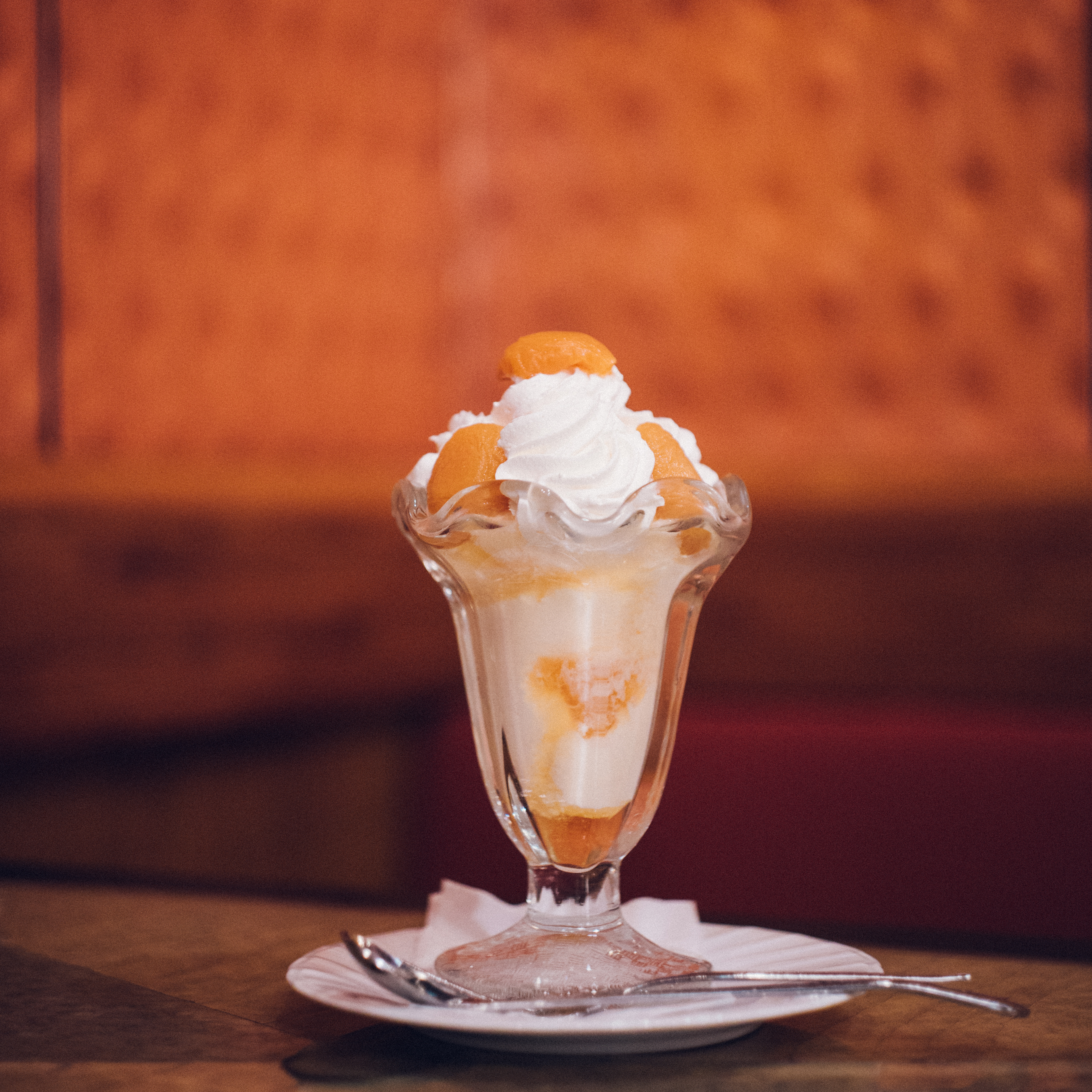 今日のメインイベントは、ずっと気になっていたあのひとを目の前にする、ということであった。気になるあのひととは、次にローヤルに来たら注文しようと想いを寄せていたアプリコットパフェのこと。イチゴだとか、チョコバナナだとかは、いろんな喫茶店で見るパフェの主役たち。しかしここには、それと同じくらい堂々たる存在感で随分昔からアプリコットパフェがある。いつも店のショーケースの前を通るたび、私はなんとなく意識せずにはいられなかった。話題の中心にいる人よりも、それを眺めつつ寡黙に佇んでいる人のほうにいつも私は心惹かれてしまう。