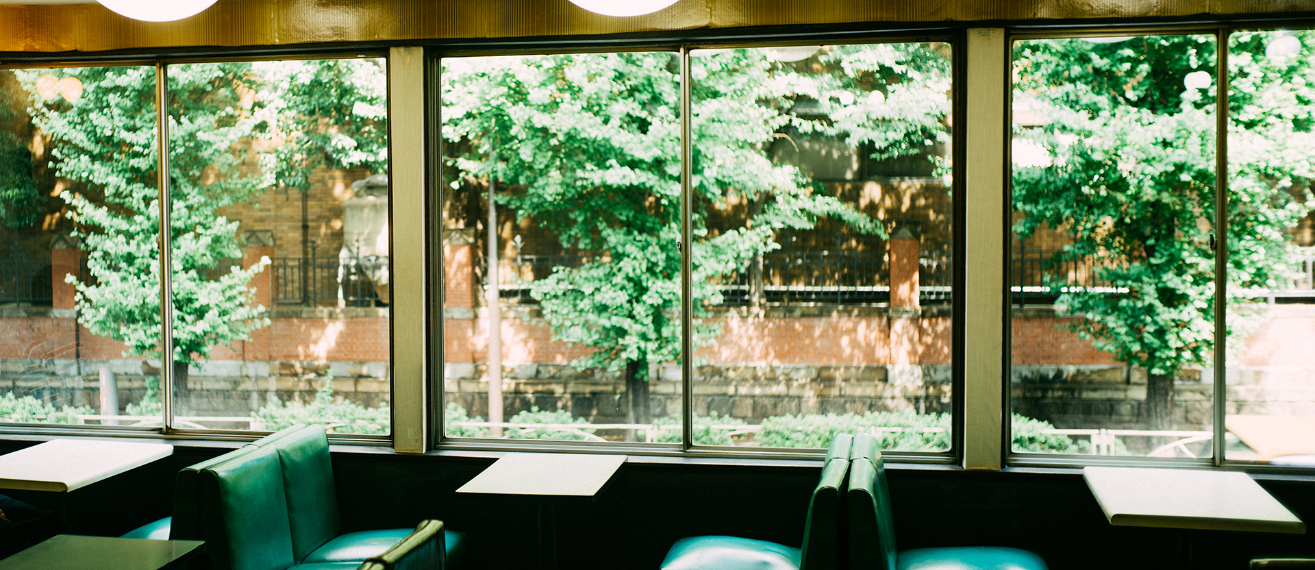 2階の窓際の緑と青のソファがひとつずつ並ぶ席がお気に入り。今日はそれに合わせて青緑色の古着のボーダーTシャツを着た。大きな窓から光が差し込んで、生い茂る木々から蝉の大合唱が聴こえてくる、店内ではひっそりと控えめに聴こえるラジオとお上品なママさんの声…これを夏休みと言わずしてなんと言おう。