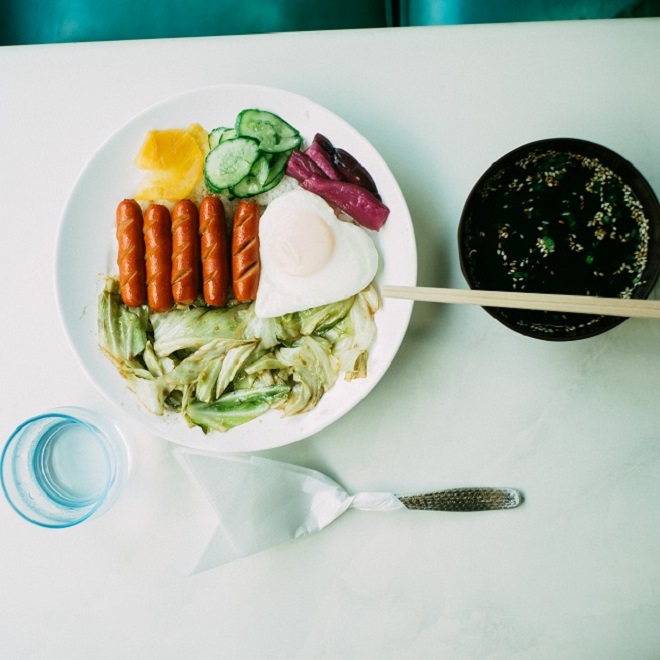 ここにはお昼時にお腹を空かせて行きたい。ウインナーライスという大好きなメニューがある。今日は目玉焼きつきにした。赤いウインナーにソース味のキャベツ、そして3種類の色とりどりの漬物たちがご飯の上にどどんとのってやってくる。絶対にどこかで1度は食べたことのあるような、ほっとする味のわかめスープと共に。
