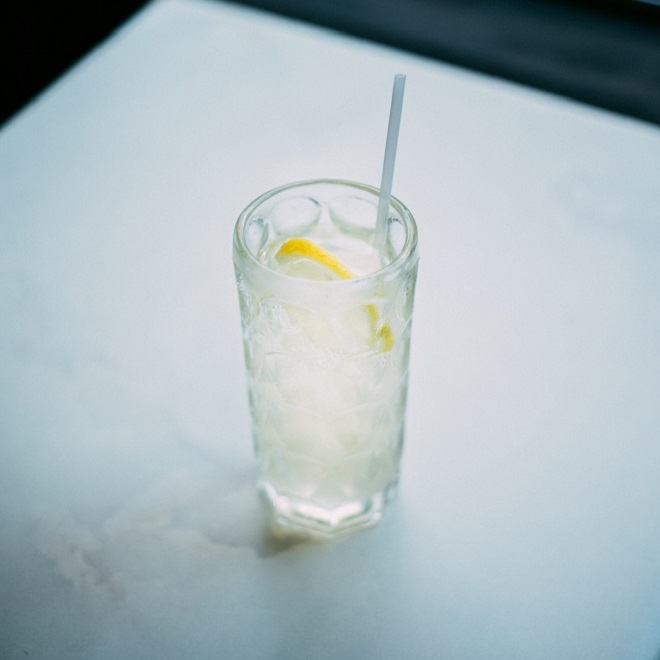 食後にはレモンジュース。乳白色のテーブルに大きなドットのグラスが涼しげでずっと見ていたくなる。そんなぼーっとした気持ちで飲んだら思ったよりすっぱくて、今日1日ずっとぼんやりし続けていた頭がしゃきっと覚めた。
