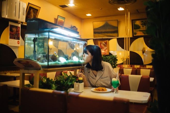 今日は水槽の横の席に座ってみる。水槽の中にも7年間生活を共にしている魚たちが2匹。そんな彼らを眺めつつ、クリームソーダとナポリタンという盆と正月が一緒に来たような、贅沢な注文をしてみる。