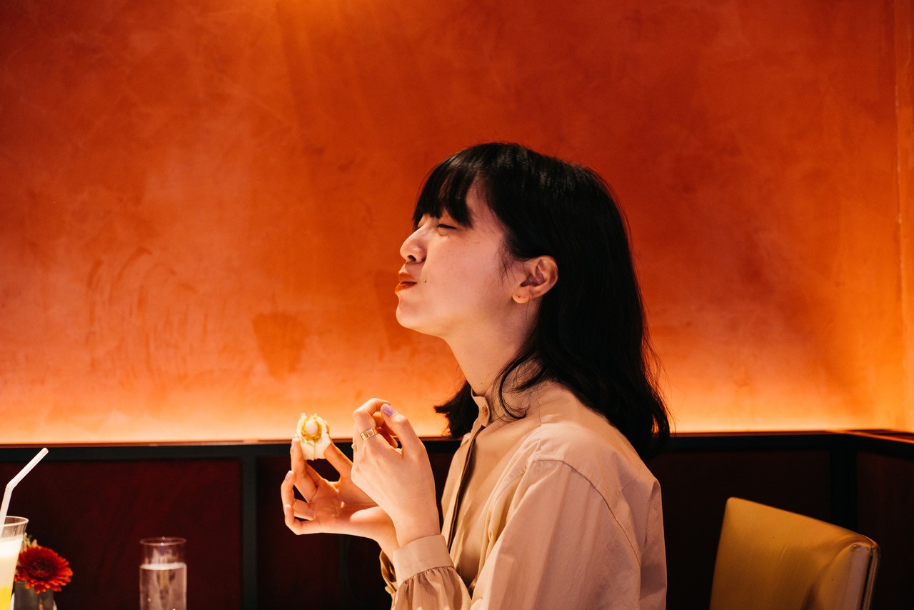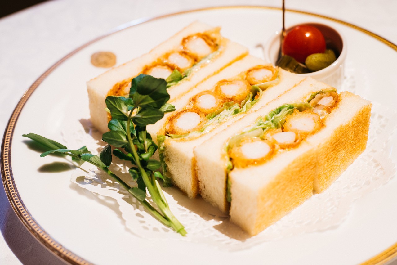 シュリンプフライサンドウィッチはコンパクトなサイズに切り分けられている。資生堂パーラーの昔ながらのお得意様である新橋の芸者さん。彼女らのおちょぼ口でも美しく食べることができるようにこのサイズになったらしい。エビフライが1切れに2つ入っているからちょうど2口で食べることができた。サンド系を食べるときについ具を先に食べ終えてしまったりする不器用な私でも均等に最後まで同じ美味しいを味わうことができて安心した。美味しさと食べやすさとで思わずにんまりとしてしまう。