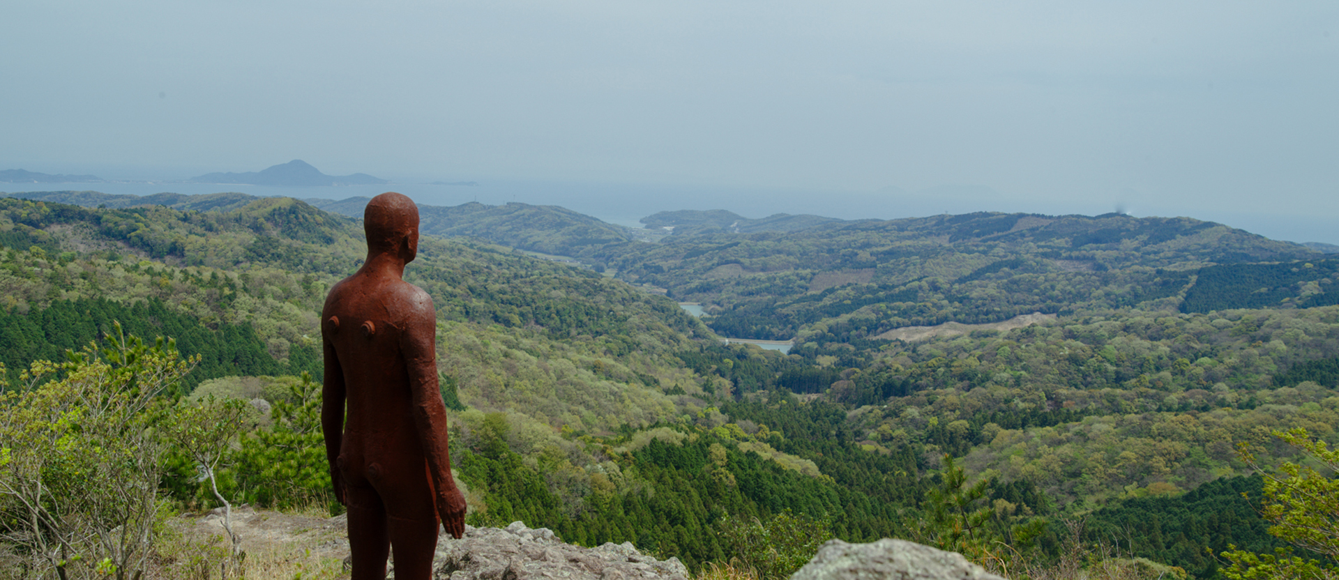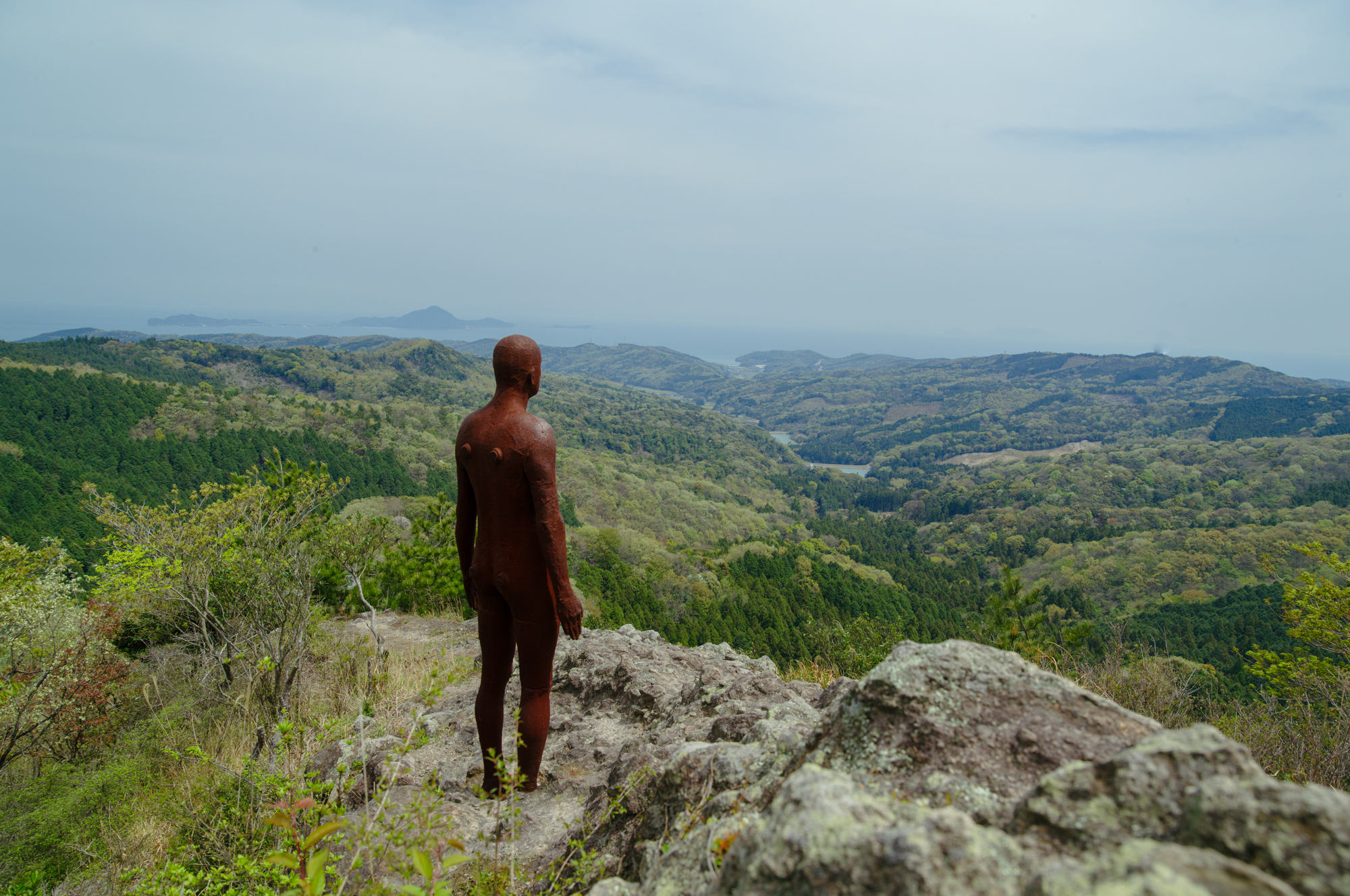 不動尊を後にして改めて見ると、山の稜線に立つゴームリー像はなるほど神々しく、違和感もなく、その場に馴染んで見える。仮に現代美術作品と言われなければ、この地に置かれた数多くの神仏の、変わった像のひとつと見る人さえいることだろう。