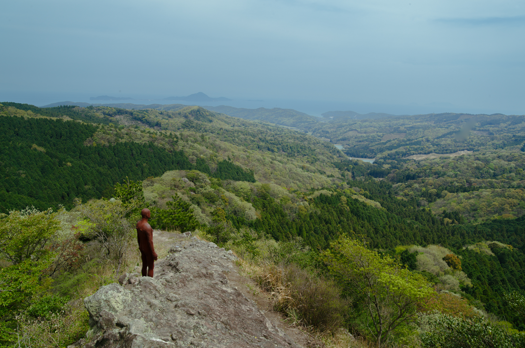 長い国東の歴史の中で、さまざまな人々が行き交い、祈ってきた山。そこに立つ像の後ろ姿はどこか神々しくもあるのだが、近寄れば不思議と人間臭くも見える。しかしおそらく、それは神でも仏でも何者でもなかった。像はかつてここを歩いた誰か、あるいは未来、ここに立つ誰かの姿の仮象なのだろう。きっと今ここに立って海を見ている私自身の姿さえ、その内側に宿しているに違いなかった。