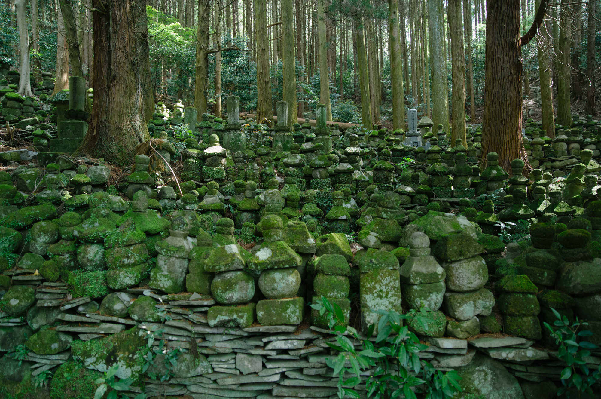 さらに山道を歩くこと20分。今度は唐突に現れた奇妙な光景に言葉を失った。おびただしい数の五輪塔が、びっしりと山道に敷き詰められているのだ。ガイドに聞くと、ここには1000基以上の五輪塔が並んでいるという。その圧倒的な光景はまるでここから先は異界、と言わんばかり、彼岸と此岸を隔てる分水嶺のようであり、私に賽の河原の石積みすら連想させた。